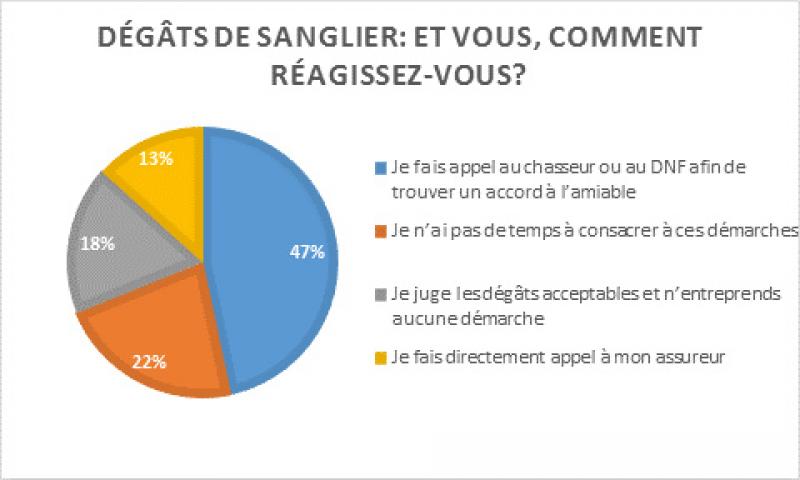 Près de la moitié des répondants (47 %) préfèrent contacter le chasseur ou le Département Nature et Forêt. Objectif : trouver un accord à l’amiable entre les parties.