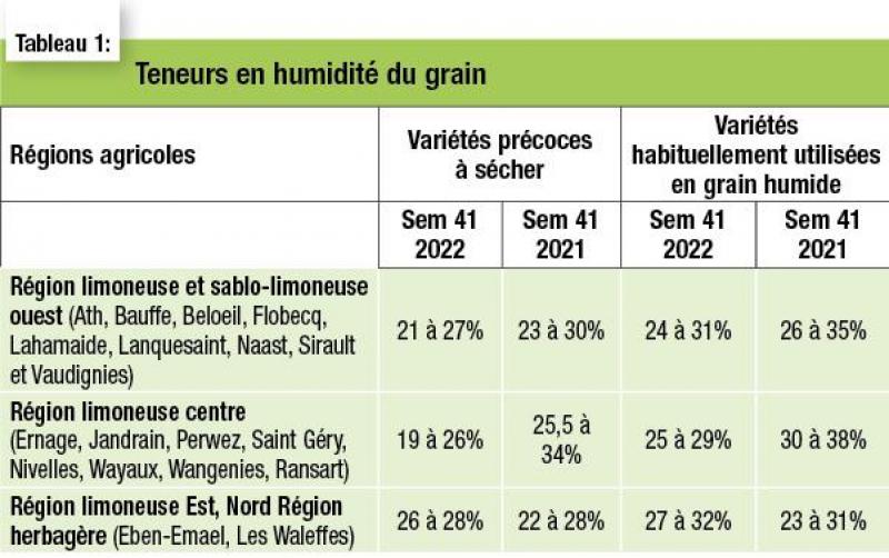 À partir du 15 octobre, sur base de 9 dernières années de prélèvements, on peut encore espérer une perte de 0,6 à 2,5 points d’humidité selon que les conditions climatiques soient favorables ou non.