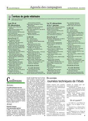 Dour-Quievrain-Haut-Pays: Beriot, 065/46.50.52. (25/12) Dour-Quievrain-Haut-Pays: Dumasy, 065/46.50.52.(24/12)
