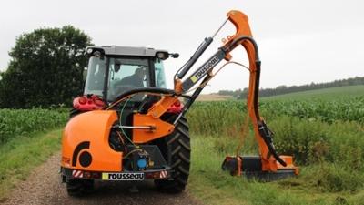 C’est dans ce contexte que s’inscrit l’E-Kastor (argent) de Rousseau. Cette débroussailleuse à bras combine un système électrique de transmission de puissance pour la partie tête de broyage, tout en gardant une commande hydraulique des vérins de mouvement (commande qui utilise l’huile hydraulique du tracteur). Le système électrique transmet la puissance mécanique de la prise de force du tracteur au rotor du groupe de broyage par le biais d’une génératrice et d’un dispositif d’électronique de puissance associé. Dès lors que le rotor tourne grâce à l’électricité, il est possible de se passer du réservoir d’huile indispensable dans le cas d’un rotor à moteur hydraulique.