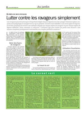 S. 27/5. Trucs et astuces au jardin. Remèdes de grand-mère, astuces de jardiniers, comment préserver son jardin des insectes indésirables et des maladies de façon naturelle ; les tailles de saison au jardin. Rendez-vous à la pépinière Frédéric Gabriel, Allées des Tilleuls, 9 à 4960 Bellevaux. Inscription par mail de préférence via pepinieregabriel@skynet.be.