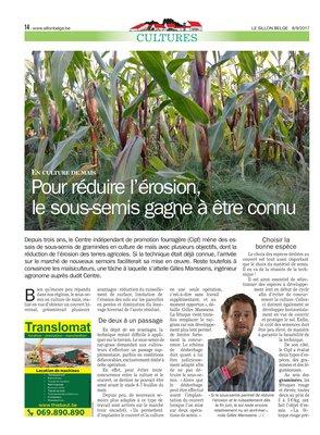 Depuis trois ans, le Centre indépendant de promotion fourragère (Cipf) mène des essais de sous-semis de graminées en culture de maïs avec plusieurs objectifs, dont la réduction de l’érosion des terres agricoles. Si la technique était déjà connue, l’arrivée sur le marché de nouveaux semoirs faciliterait sa mise en œuvre. Reste toutefois à convaincre les maïsiculteurs, une tâche à laquelle s’attelle Gilles Manssens, ingénieur agronome auprès dudit Centre.