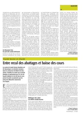 Enfin, les marchés du 5e quartier sont à la peine : le prix des peaux est au plus bas en raison de la fermeture des tanneries qui n’ont actuellement plus de débouchés (que ce soit pour l’industrie automobile ou du luxe) et les abats sont également fortement impactés par la réduction de la demande à l’export et en interne.