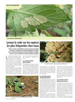 Plusieurs espèces sont polyphages, mais en maraîchage, les gros dégâts proviennent d’espèces liées à une catégorie de plantes. Lors d’étés plutôt chauds tels que nous les connaisssons, ces dernières années, les migrations de noctuelles nous apportent des populations provenant de France.
