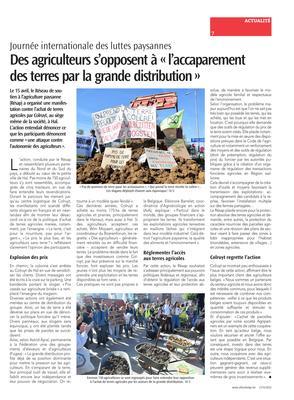 Le 15 avril, le Réseau de soutien à l’agriculture paysanne (Résap) a organisé une manifestation contre l’achat de terres agricoles par Colruyt, au siège même de la société, à Hal. L’action entendait dénoncer ce que les participants dénoncent comme « une attaque contre l’autonomie des agriculteurs ».