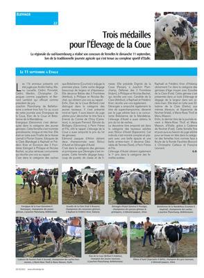Enfin, Elan de la Coue (Brillant) s’est distingué dans la catégorie des jeunes taureaux. Il s’est présenté rond et ligné. Il aura besoin du juge arbitre pour décrocher le titre face à Enervé du Comte de Chiny (Cameleon), à Jacques Pierrard. Ebruité du Blofagnu (Géronimo), à Perin Frères et Fils, clôt le rappel. L’élevage de la Coue a aussi emporté le prix du lot de génisses.
