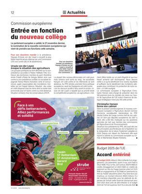 Le budget 2025 s’élève à 199,4 milliards € en engagements. Les paiements, quant à eux, sont fixés à 155,21 Md€. Pour la Pac, sont prévus 39,976 Md€ en crédits d’engagement et 40,03 Md€ en crédits de paiement au titre du Feaga (premier pilier) et 13,23 Md€ en engagements et 10,5 Md€ en paiements au titre du Feader (deuxième pilier). Pour faire face aux imprévus, un montant d’environ 800,5 millions € a été maintenu disponible sous les plafonds de dépenses de l’actuel cadre financier pluriannuel pour 2021-2027. Avec près de 200 milliards €, le budget 2025 de l’UE est supérieur de 6 % à celui de 2024.
