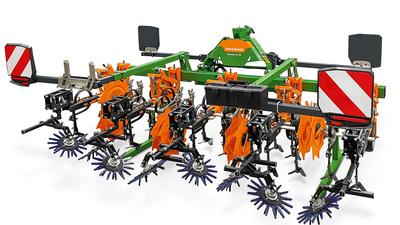 Le cœur de la Venterra 1K est son parallélogramme, assurant le guidage de l’outil mais gage également de sa modularité. En effet, le parallélogramme peut être de type EKP ou KPP. Le premier est adopté pour des largeurs de rangs jusqu’à 30 cm et peut être équipé jusqu’à trois socs. Pour les inter-rangs entre 45 et 75 cm, le second parallélogramme entre en jeu. Celui-ci intègre jusqu’à cinq socs et sa profondeur de travail peut être réglée en continu.
