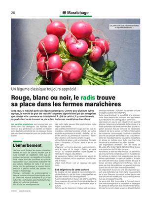 Les faux semis limitent les risques d’envahissement en cours de culture, d’autant que le cycle complet de végétation n’est que de quelques semaines. Les capselles et la cardamine hirsute sont des crucifères au cycle de reproduction court, ces plantes s’adaptent vite aux cultures répétées de radis. Il en est de même pour les galinsoges, le mouron des oiseaux et le pâturin annuel, des plantes courantes en maraîchage.