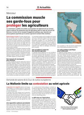 Début septembre, la commission a transmis aux États membres les textes juridiques de l’accord, ouvrant ainsi la voie à son approbation finale par le Conseil de l’UE et le parlement européen. Consciente des inquiétudes du monde agricole, elle a présenté un nouveau règlement destiné à garantir une réaction rapide en cas d’effets négatifs sur certaines filières.