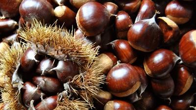 Préparation : faire revenir l’oignon et l’ail, ajouter le potiron préalablement coupé en dés et les châtaignes et couvrir de bouillon. Cuire 25 minutes, puis mixer. Servir chaud avec un filet de crème et des éclats de châtaignes grillées.