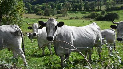 Clermont-Ferrand et son horizon dessiné par des volcans, avec le Puy de Dôme en toile de fond. En ville, déjà, la région séduit. Au cœur de la campagne, dans le village de Pommier, l’ambiance est bien plus paisible. À 1.000 mètres d’altitude, seules les cloches des vaches se font entendre. Plusieurs broutent dans un pré, avec leur couleur grise qui brille sous les rayons du soleil automnal. Pas de doute : nous sommes arrivés à destination. Il est temps d’en découvrir davantage sur la Gasconne des Pyrénées, une race bovine française originaire, comme son nom l’indique, de la chaîne de montagnes des Pyrénées.